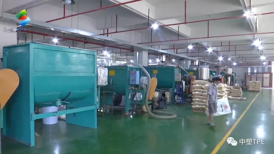中塑王作为弹性体材料行业的标杆企业,深受政府和市场的高度关注。当日,惠州电视台工作人员一行走进惠州中塑王生产车间,首先展现在面前的是多条整齐的自动化生产线,挤出的塑料条经切粒机切成颗粒,再搅拌后打包成袋。企业技术人员告诉记者,中塑王所生产的这种塑料材料具有弹性好、环保无毒等特点,需要10多种化工原料合成,应用行业非常广泛。