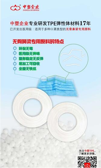 要想保障口罩的供应量,少不了各种原材料,尤其是口罩鼻梁专用料,它环保无毒、医用级无异味、塑形稳定无反弹、易加工可回收、全塑无铁丝。作为TPE行业的佼佼者,17年来,中塑企业始终专注于研发TPE弹性体材料,逐步成长为国际化的大企业。