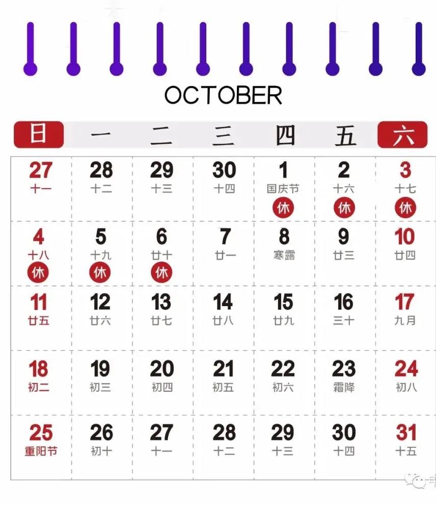 放假时间:10月1号-10月6号,共计6天