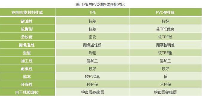 相比较之下,TPE材料则更为环保,安全无毒,而且具有耐低温、质量轻、易加工、柔软富有弹性等诸多优良特点。正因如此,目前业界人士对于用TPE取代PVC作为新的充电桩电缆的呼声也越来越高。而且随着技术的发展,TPE材料在耐油性上也有了长足发展,TPE复合材料的出现也开始满足了充电桩对于线缆耐油性和耐水性的要求。